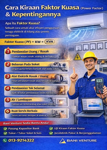 Pelajari cara kiraan faktor kuasa (power factor) yang betul, kepentingannya dan bagaimana ia membantu mengurangkan bil elektrik serta meningkatkan kecekapan sistem elektrik.