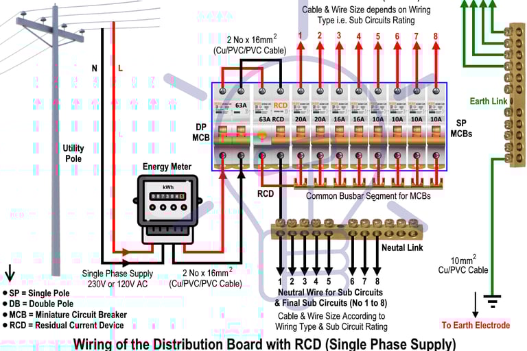 Pastikan MCB dan RCCB tidak longgar, tidak hangus dan berfungsi dengan baik. Jika MCB kerap trip, ia mungkin tanda masalah wiring atau beban berlebihan.