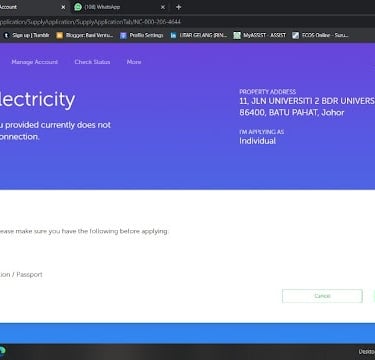 This issue commonly occurs for users who have just rented or purchased a house, including subsale houses, auction houses, or new houses. This happens because the previous owner or tenant closed the TNB account and reclaimed the deposit.