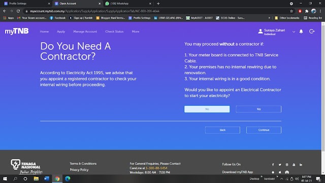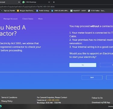 Reminder: Online applications can only be made if the account record still exists in the TNB system or if the meter was last disconnected less than 5 years ago. If there is no record or it has been more than 5 years, the application must be processed through a contractor.