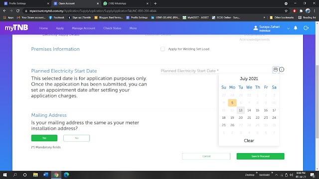 Select the date when you want the electricity supply to start. Usually, TNB provides a date within 7 days from registration. In many cases, TNB works quickly—applications submitted today may be completed the next day, depending on the area. Public holidays cannot be selected.