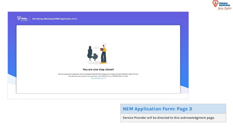 Kedai Tenaga will be receiving an email on the NEM application together with the attachments, and continue processing the NEM application