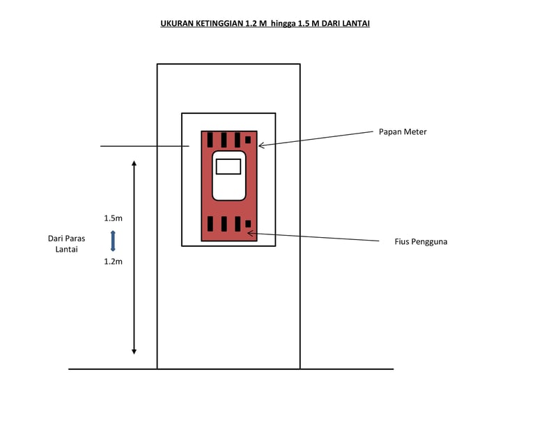 Ketinggian papan meter tnb adalah 1.5 m dari lantai ke atas top papan meter,dan 3phase pula dari lubang cut off ( fius )
